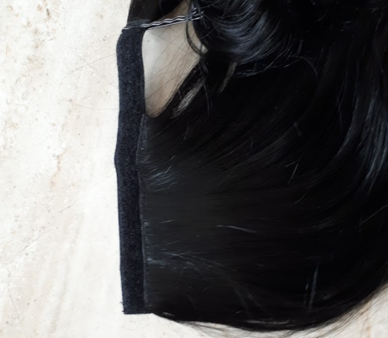Do you know what the best part was? The thickness of the hair was consistent from top to bottom. I ran my hand through the ponytail multiple times to see if there was a defect, but I couldn’t find any. Most ponytail extensions tend to have thinner hair at the bottom, which makes the ponytail appear weak. But this ponytail by In H Hair looked very healthy and natural all over. As for the color of the ponytail extensions, the color that I had initially ordered from the website was the same as the one I had received. The jet back color was not faded from any spot and looked precisely on the website.